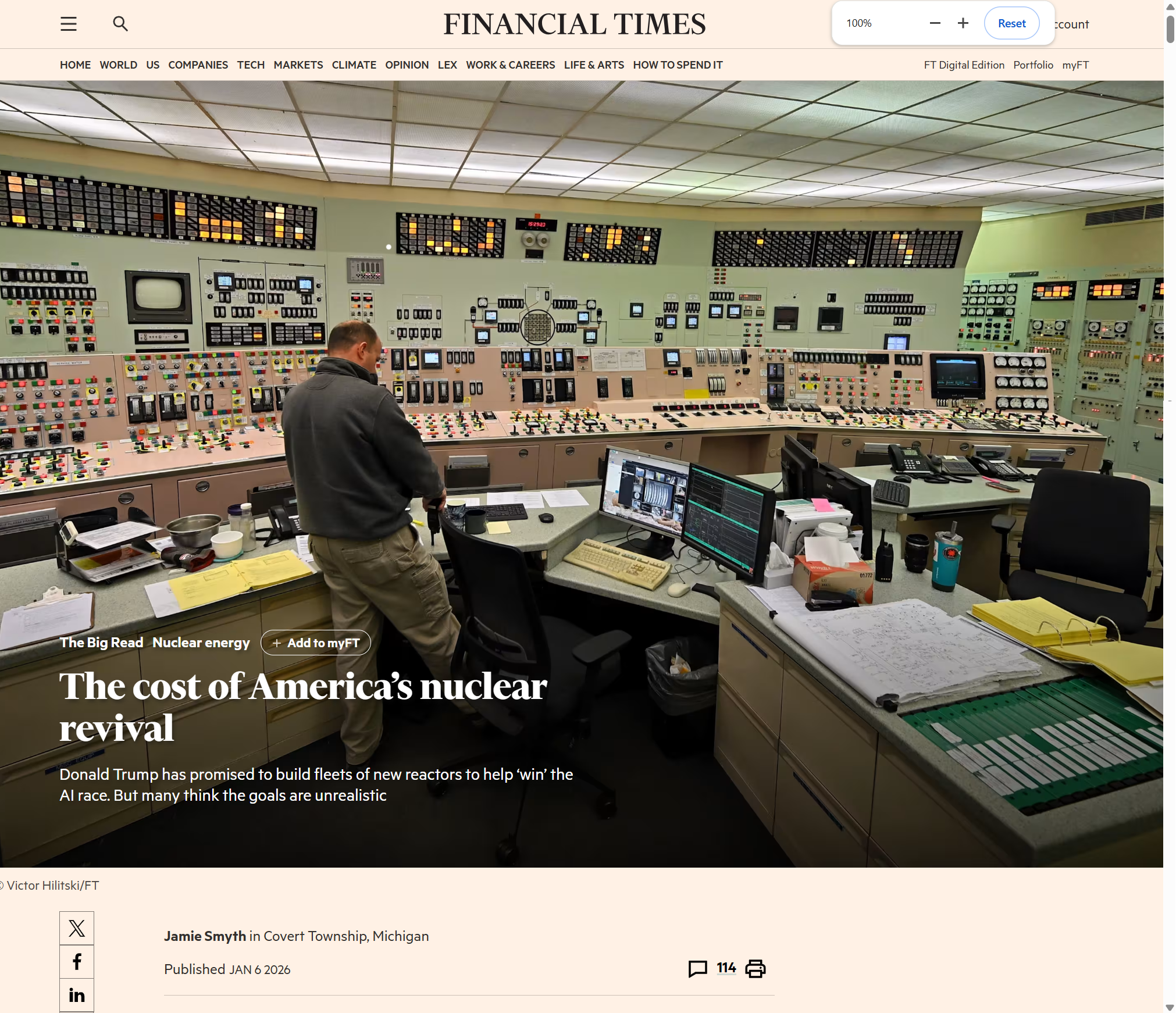 For the Financial Times: a story about the restart of the Palisades Nuclear Plant in Michigan.